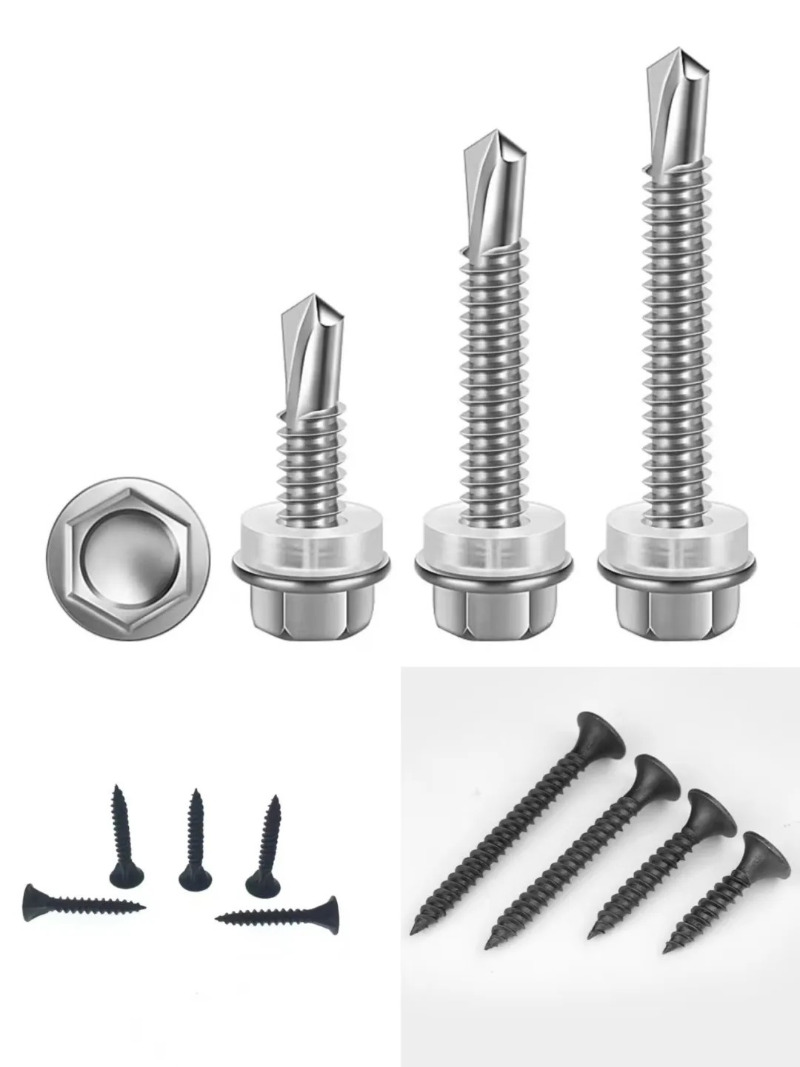 六角頭セルフドリルねじ: 電動工具を使用して簡単に設置できるように設計されています。鉄骨構造の建設によく使用されます。